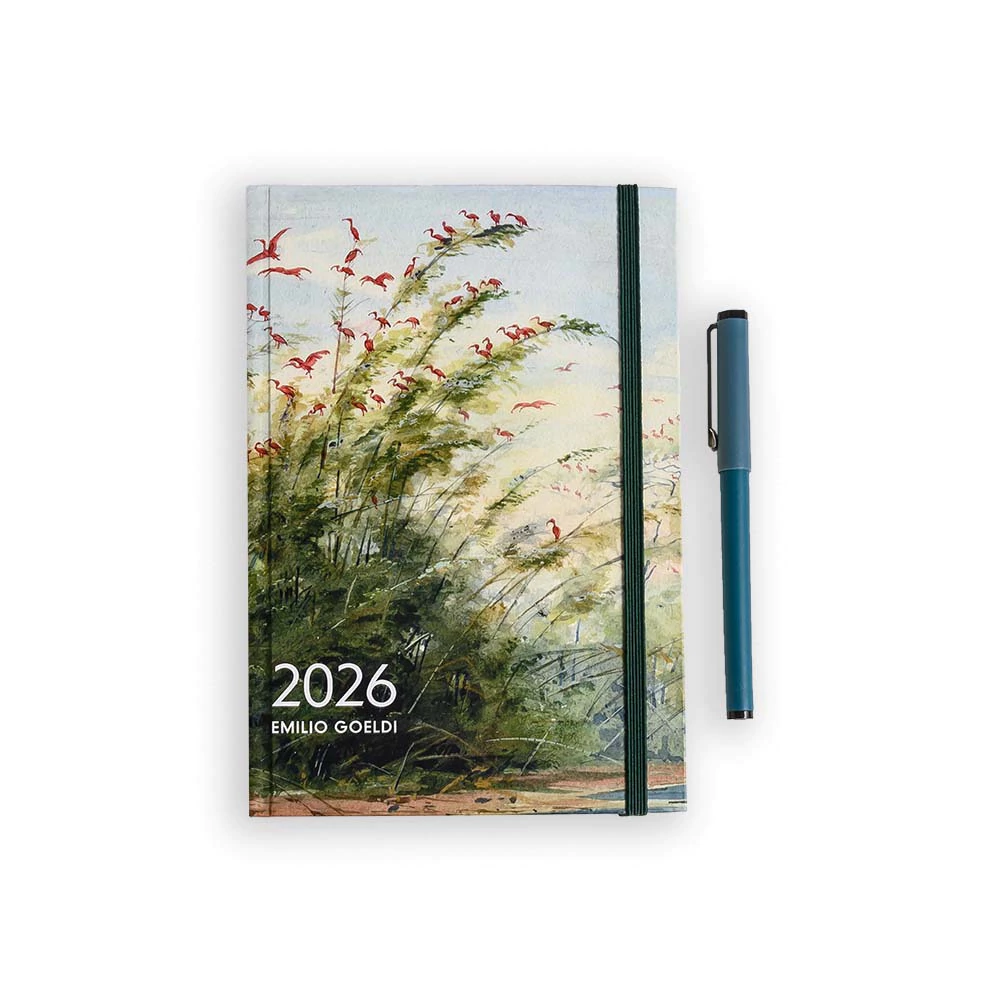 Acostumado às paisagens invernais, o naturalista suíço Emilio Goeldi (1859-1917) se encantou com a riqueza da fauna brasileira. Acompanhado pelo ilustrador alemão Ernst Lohse, embrenhou-se na mata para estudar e documentar as aves amazônicas. O resultado foi a criação de um livro com 48 litogravuras aquareladas “Álbum de Aves Amazônicas”, com 337 espécies. As andorinhas ilustradas no livro são a capa desta bela agenda Teca.