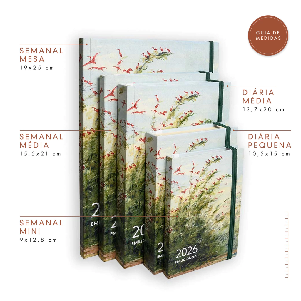 Acostumado às paisagens invernais, o naturalista suíço Emilio Goeldi (1859-1917) se encantou com a riqueza da fauna brasileira. Acompanhado pelo ilustrador alemão Ernst Lohse, embrenhou-se na mata para estudar e documentar as aves amazônicas. O resultado foi a criação de um livro com 48 litogravuras aquareladas “Álbum de Aves Amazônicas”, com 337 espécies. As andorinhas ilustradas no livro são a capa desta bela agenda Teca.
