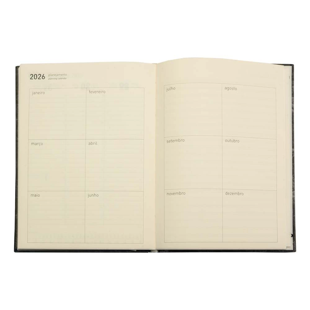 Planejamento 2026 em colunas, com quatro páginas no início.