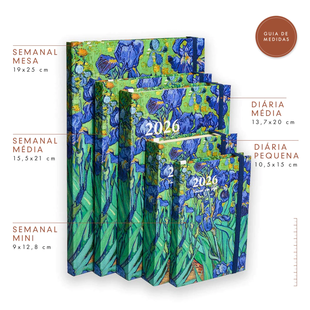 Em apenas 37 anos de vida, o holandês Vicent Van Gogh produziu mais de 2100 trabalhos. As pinceladas vigorosas, dramáticas e cheias de movimento empregam cores puras, vivas, e extraem até de naturezas-mortas uma humanidade sem igual. Sua alma atormentada foi capaz de produzir alguns dos quadros mais icônicos da arte moderna, como nestas agendas que você pode levar para onde quiser.